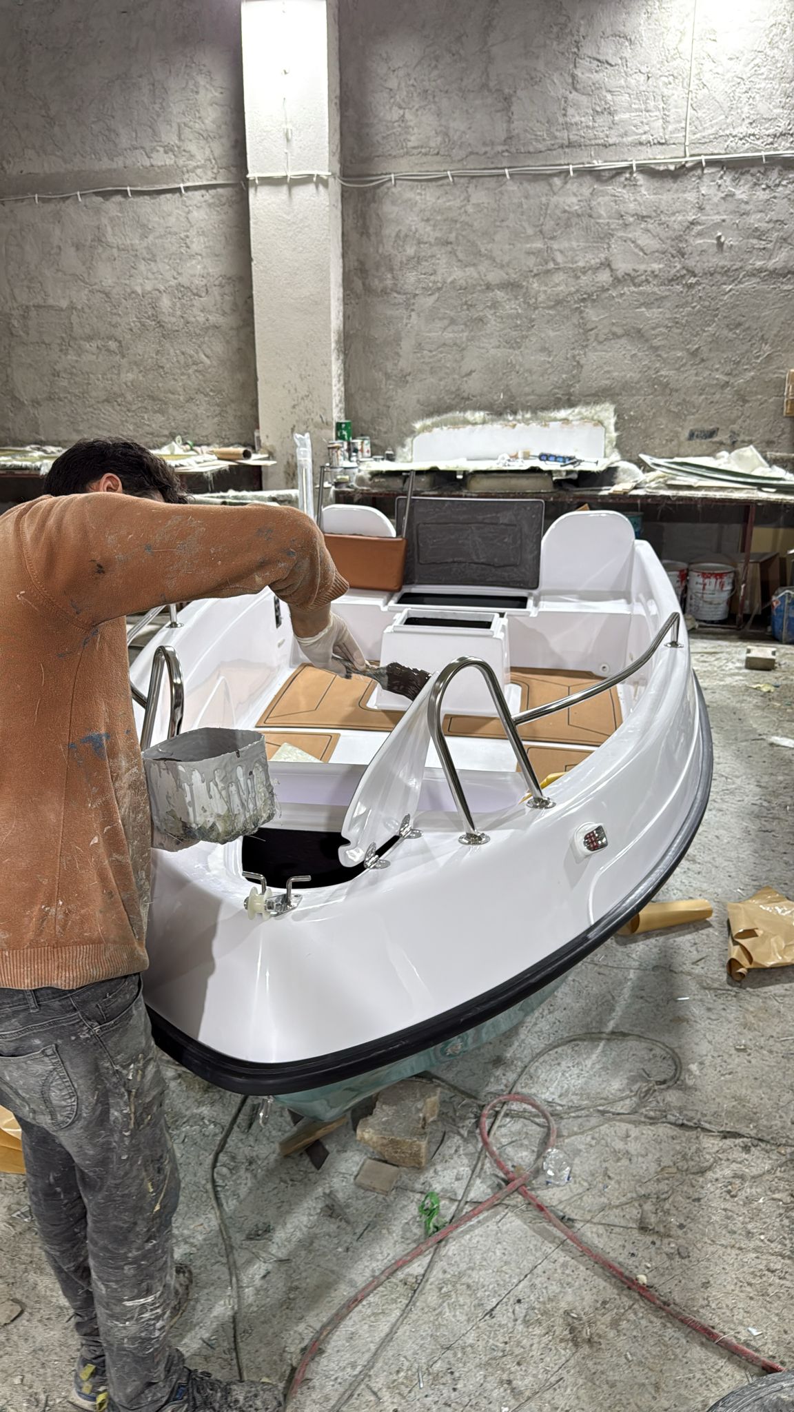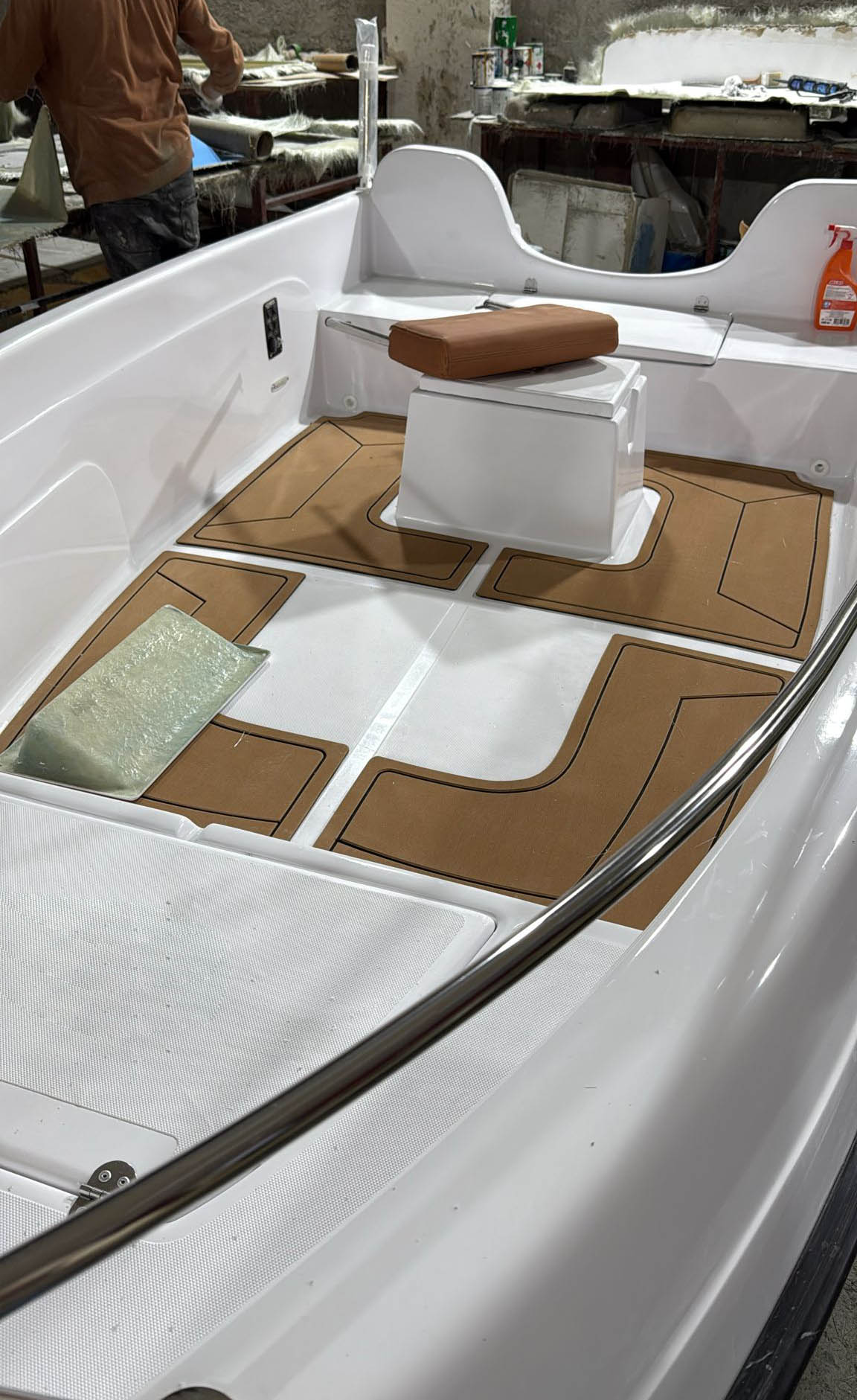 4 Εγκατάσταση δαπέδου foam teak, κομμένο με CNC.